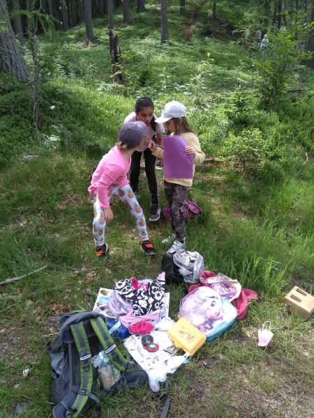 Výprava první třídy na altánek a kopec nad Merklínem.